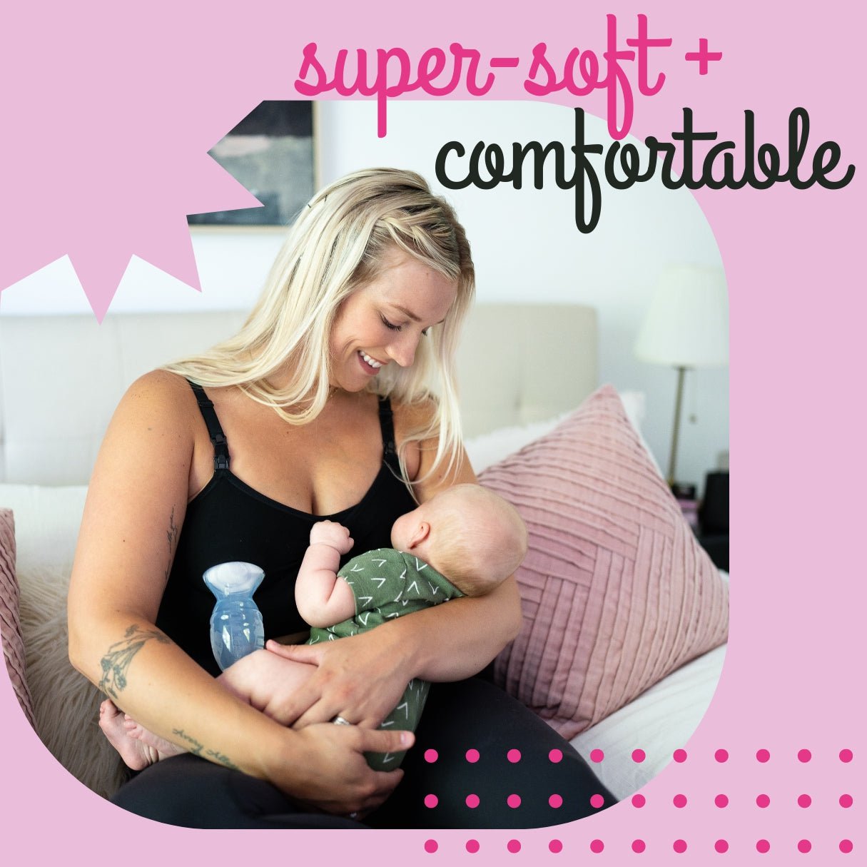 That’s right, mama. We did it! We made a nursing + hands-free pumping bra that is comfortable enough for all-day wear and stretchy enough to support your ever changing body. Designed with super-soft fabric made from bamboo for sensitive skin. Undo the clips for easy access when breastfeeding and convenient support for hands-free pumping.